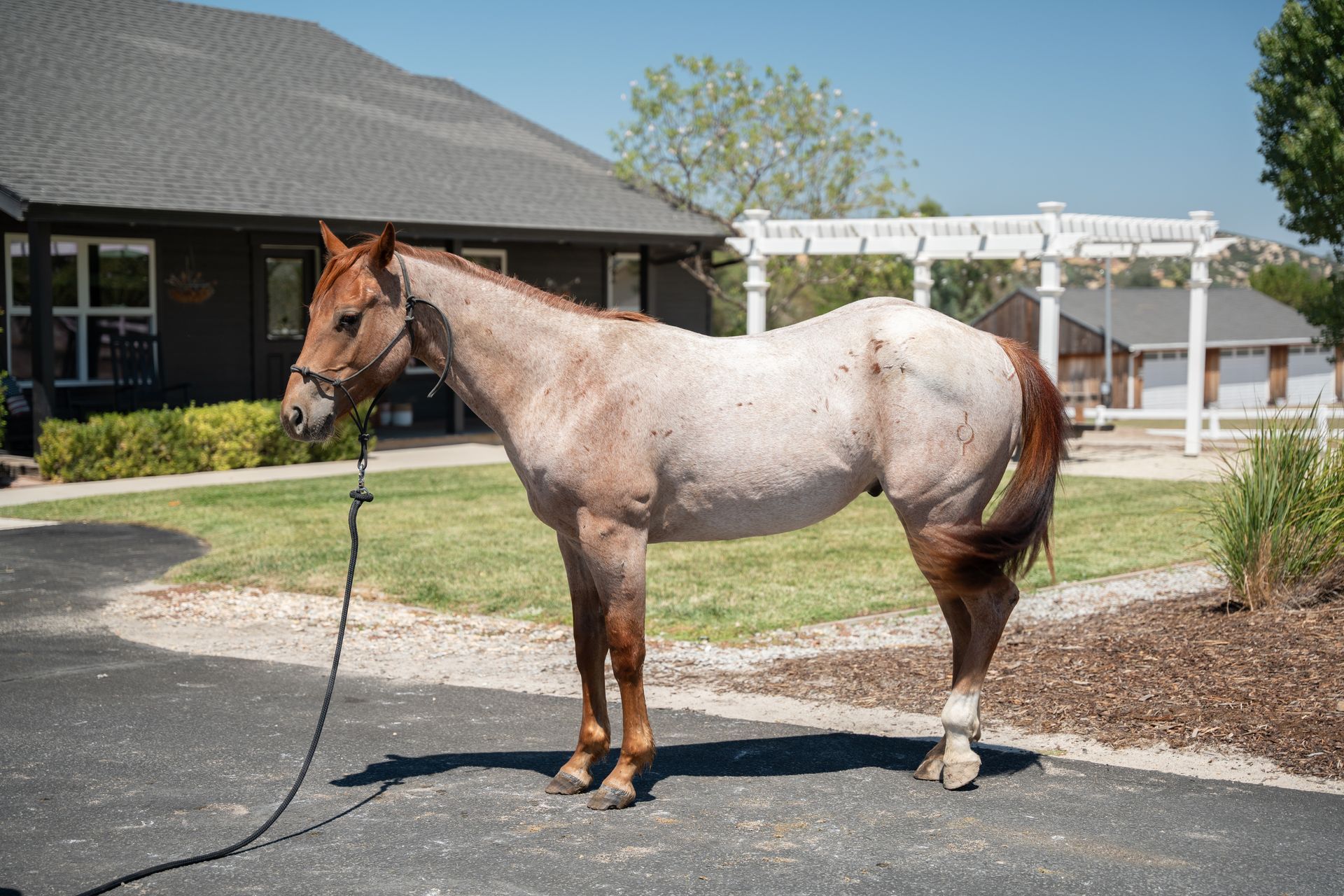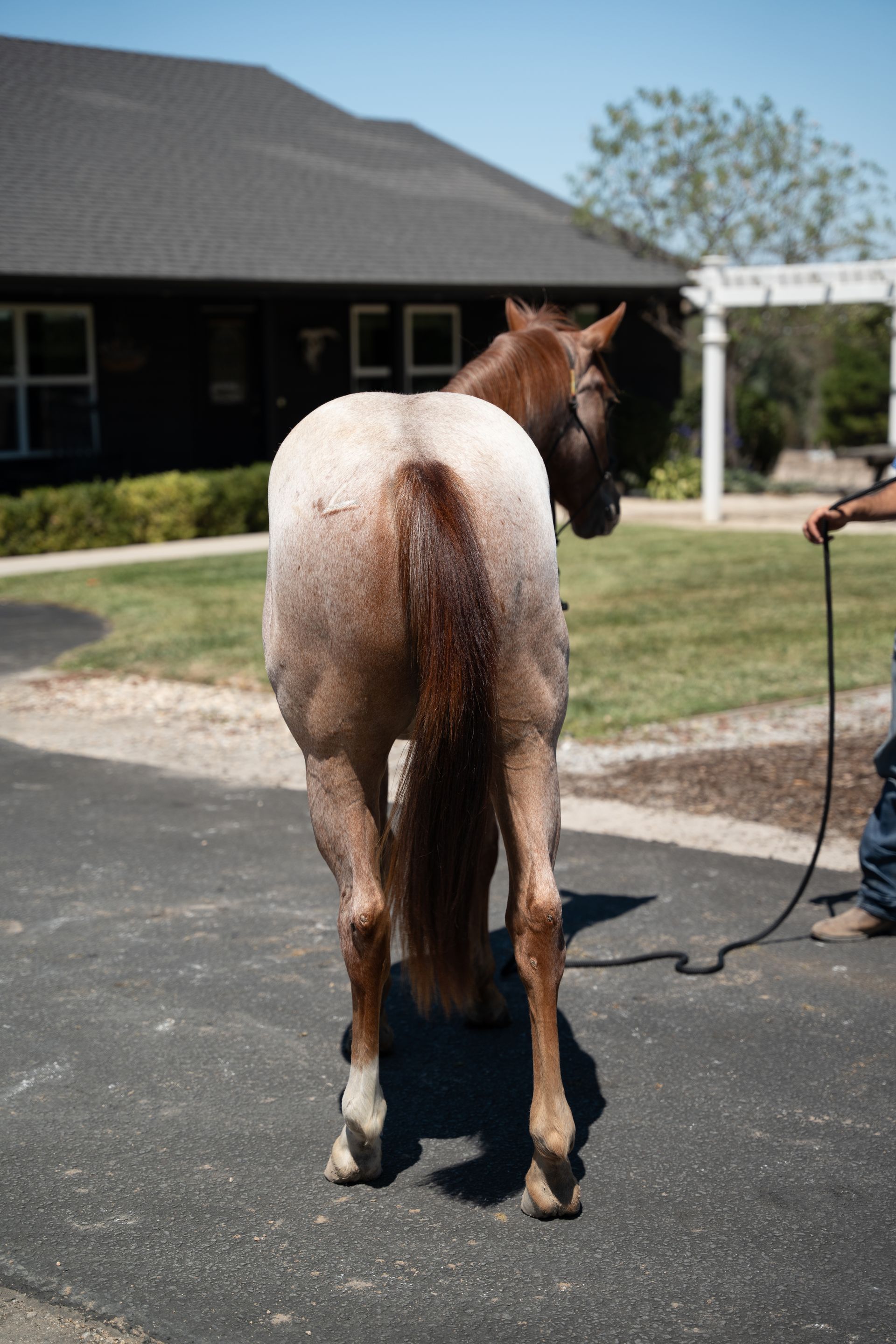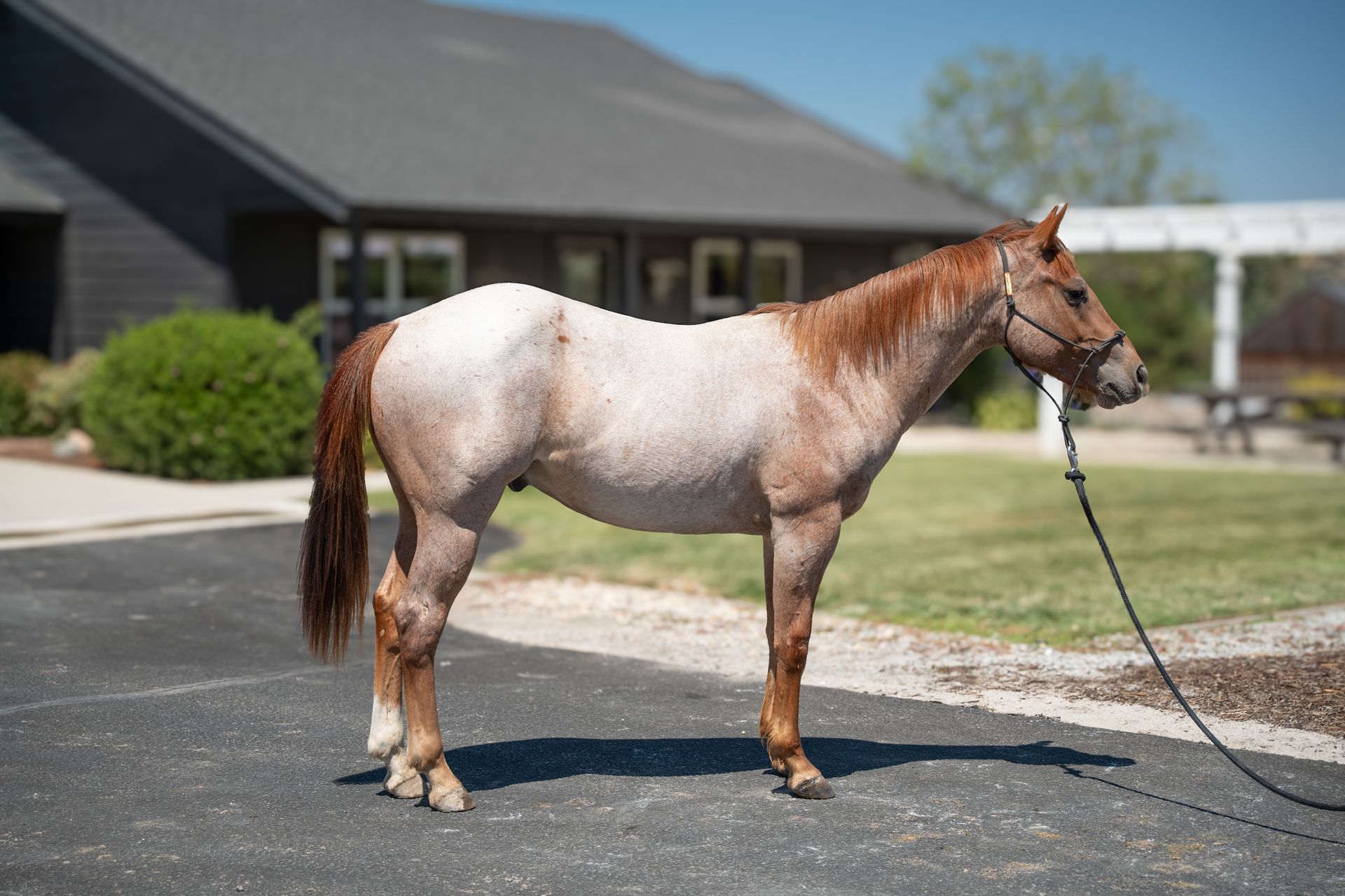 JS Junewoodboomer Aka Boomer is a striking registered Red Roan Stallion.In the past year, Boomer has been started under Austin’s guidance. He possesses a solid foundation, with well-rounded groundwork training.