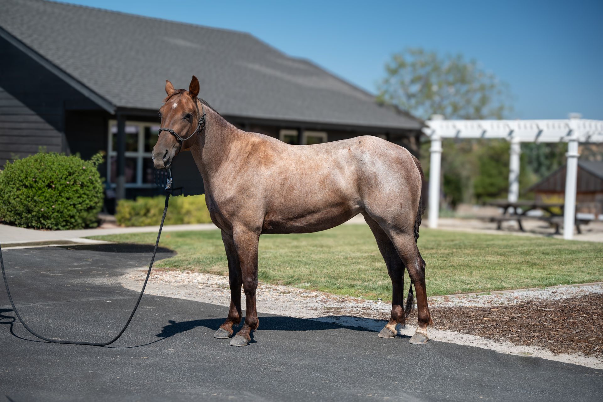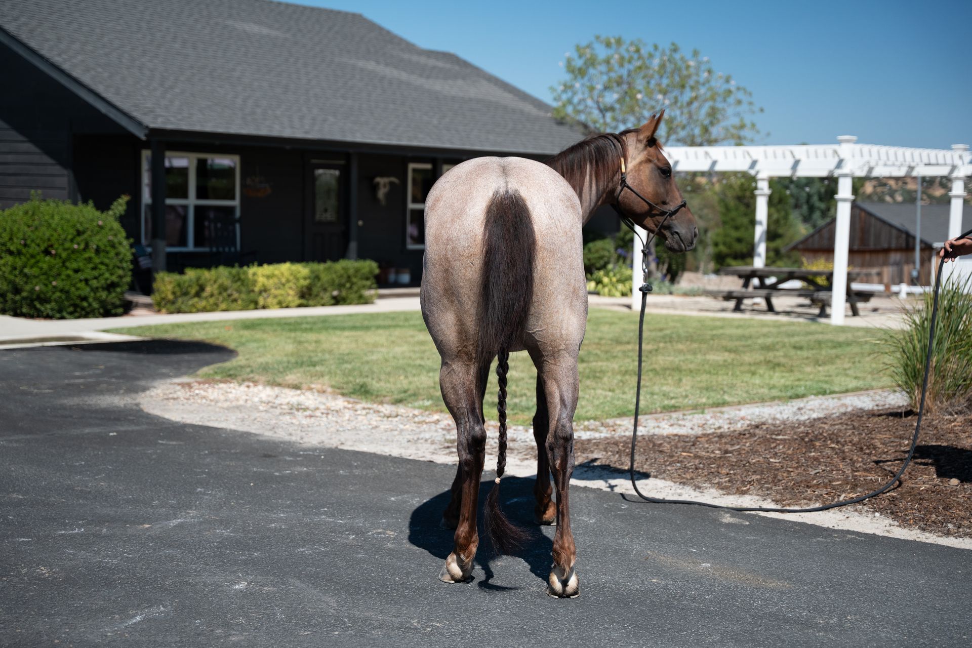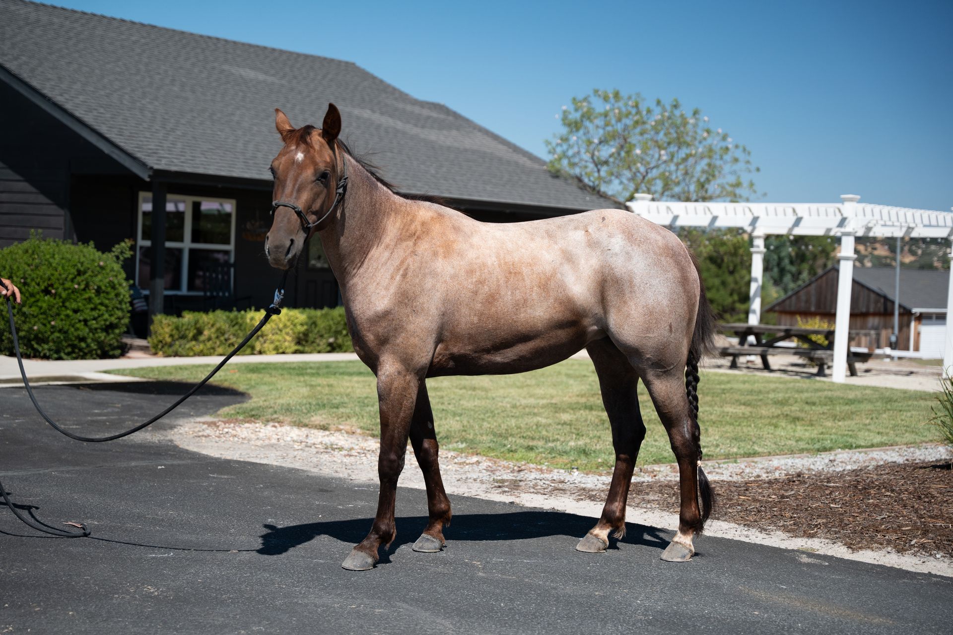 Stunning Moves Aka Buttons, a striking Red Roan Mare paid into both the Royal Crown and Riata Buckle programs. With a strong foundation built by capable hands, Buttons has seamlessly transitioned from her beginnings as a cutter to daily training that prepares her to excel in any home or program. She’s a smooth and confident ride, even in arena traffic, and boasts a pleasant, willing demeanor without any bad habits or vices. This mare is sound, ready, and poised to become a standout addition to your team and home.