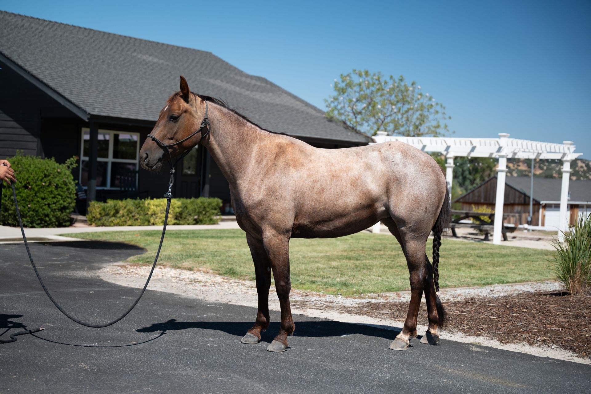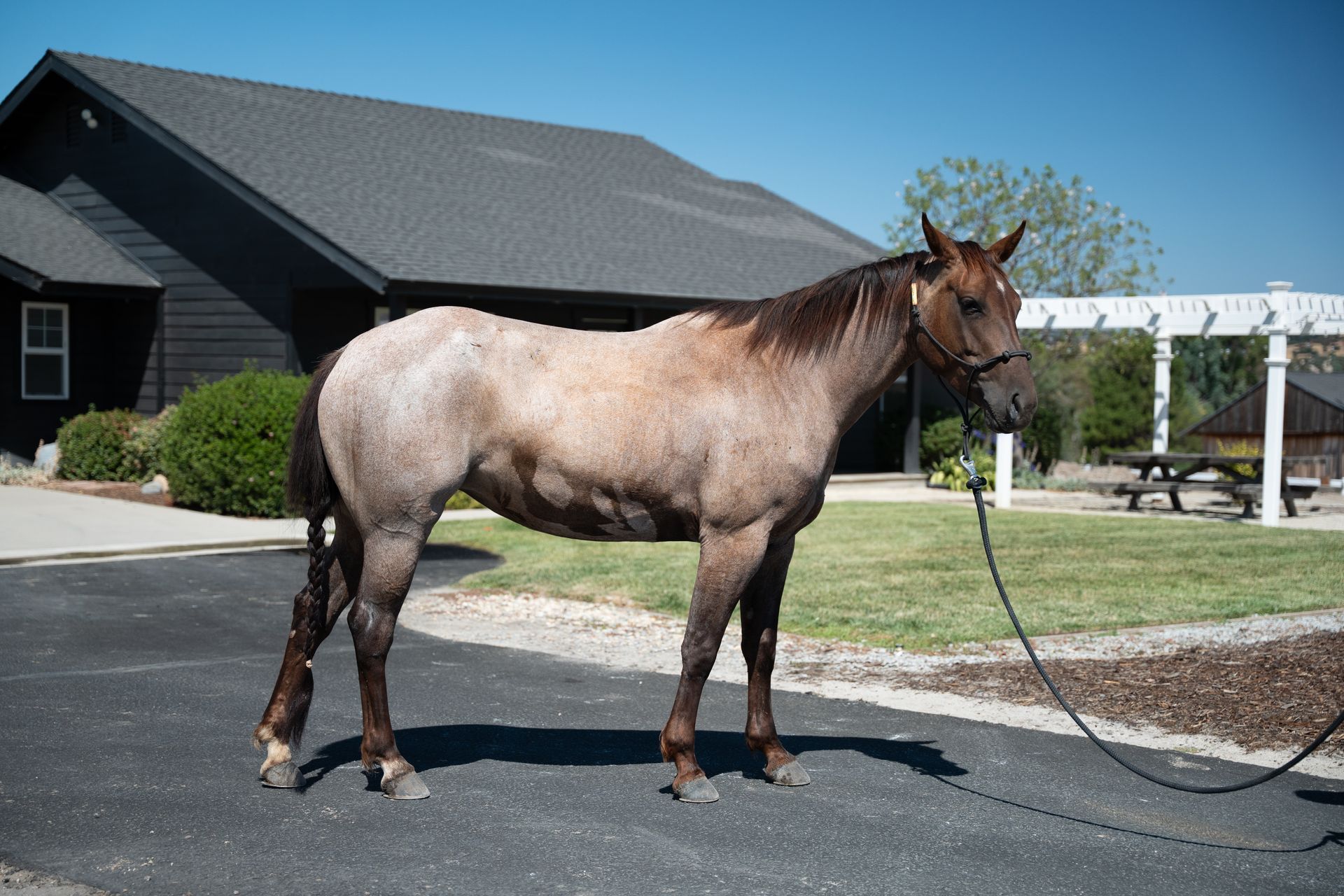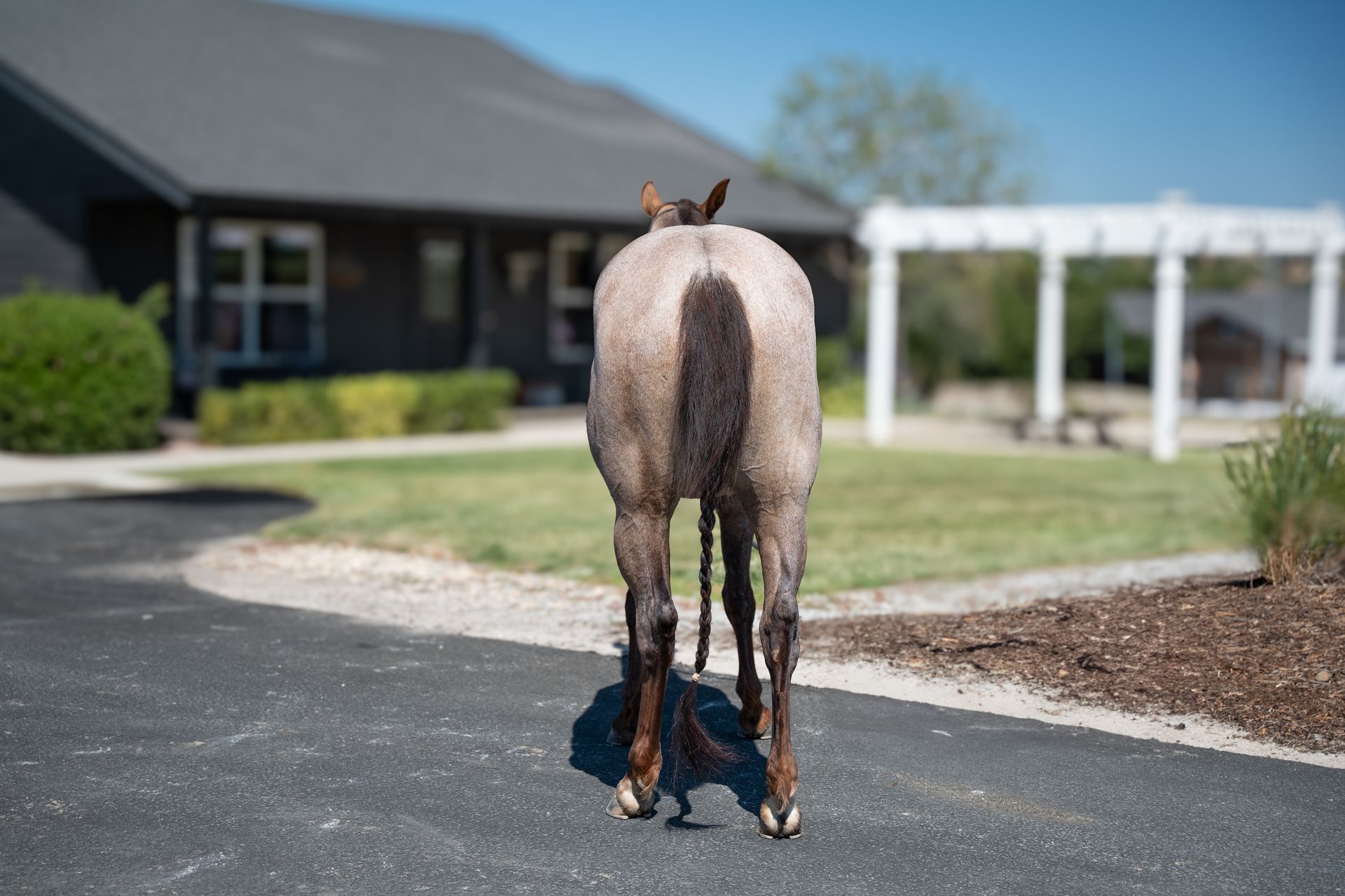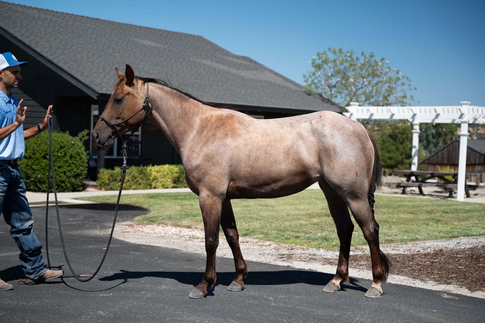 Stunning Moves Aka Buttons, a striking Red Roan Mare paid into both the Royal Crown and Riata Buckle programs. With a strong foundation built by capable hands, Buttons has seamlessly transitioned from her beginnings as a cutter to daily training that prepares her to excel in any home or program. She’s a smooth and confident ride, even in arena traffic, and boasts a pleasant, willing demeanor without any bad habits or vices. This mare is sound, ready, and poised to become a standout addition to your team and home.