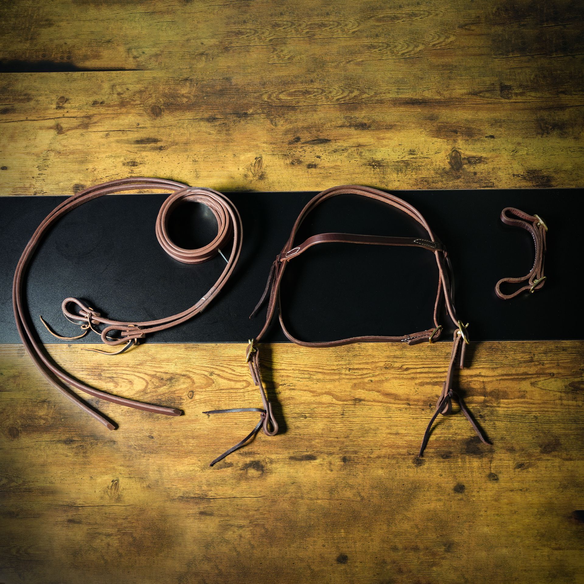 Austin's go-to choice for handcrafted tack, personally recommended by Austin himself. This handcrafted harness leather tack, including a curb strap, brow band and reins. This set is ideal for all equestrians handmade for durability and convenience, these set will quickly become a must-have in your tack room.